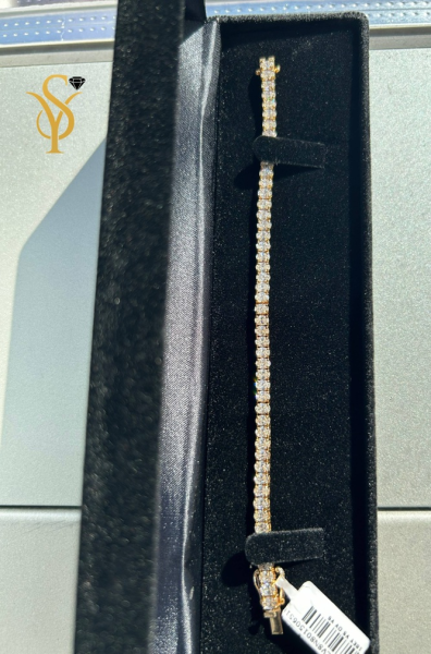 Experience luxury with this stunning 7.5 carat total weight natural diamond tennis bracelet, crafted with a sleek and secure tennis-style design. Each diamond is oval-shaped, giving the bracelet a refined, elongated sparkle that beautifully stands out on the wrist. Perfect for daily elegance or special occasions, this bracelet delivers premium shine and timeless style. Features Total Carat Weight: 7.5 CTW (Natural Diamonds) Diamond Shape: Oval Setting: Secure prong-set design Fit: Smooth, flexible tennis construction Condition: Brand new Perfect For: Gifting, anniversaries, luxury upgrades, bridal wear Why This Bracelet Stands Out Oval diamonds offer a high-end, elongated sparkle that sets this bracelet apart from standard round tennis styles, giving it a uniquely elegant and premium look.